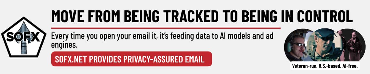 SOFX.net gives you an email that’s truly yours. No tracking. No AI. No shady terms buried in fine print, just secure communication built by veterans who value privacy.